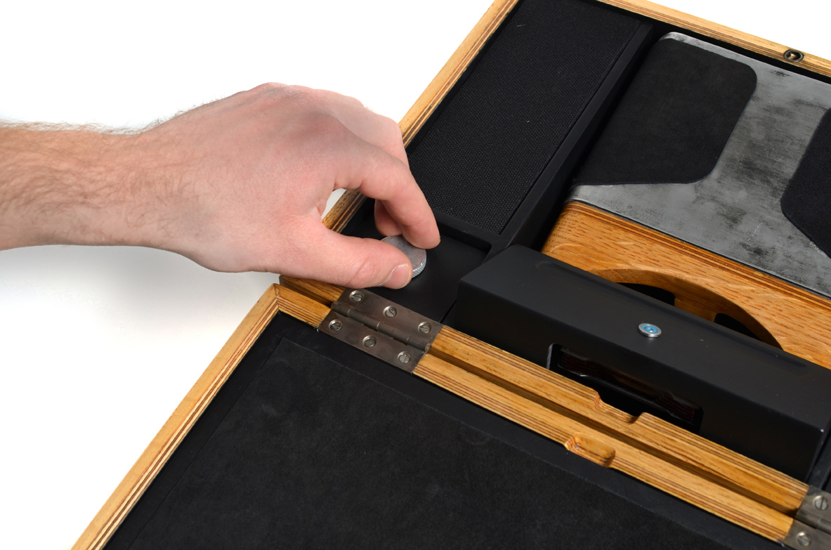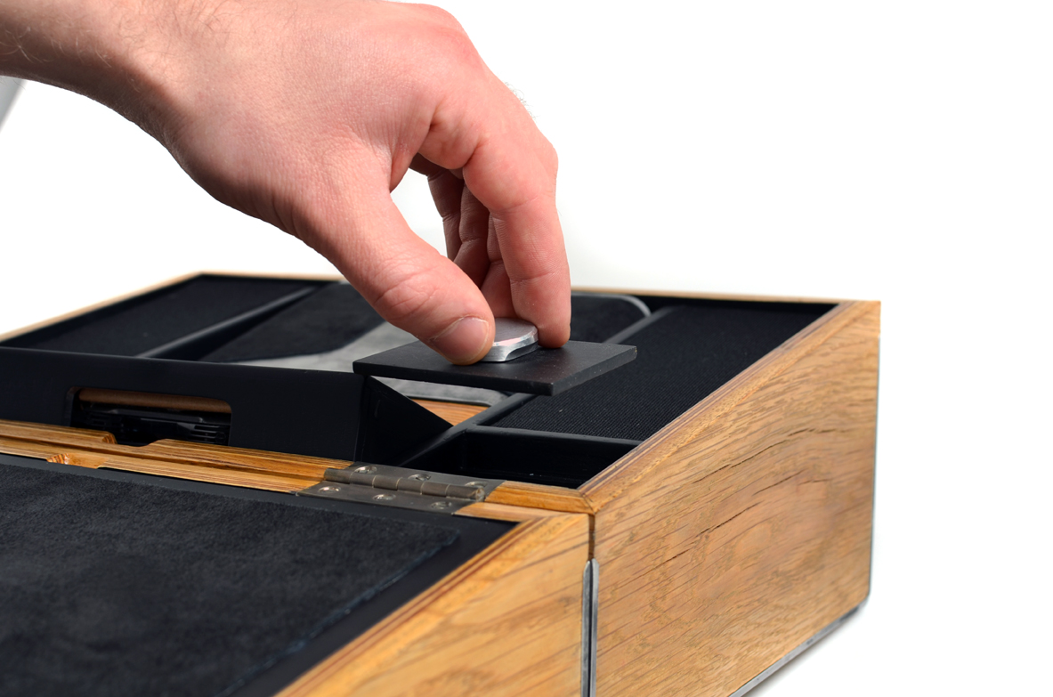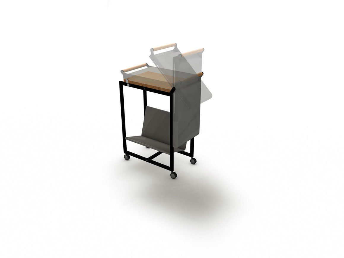 The trolley includes a personal locker. You can lock your personal belongings on top of it, by covering it with a metal sheet lid.