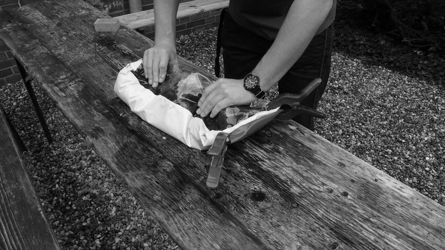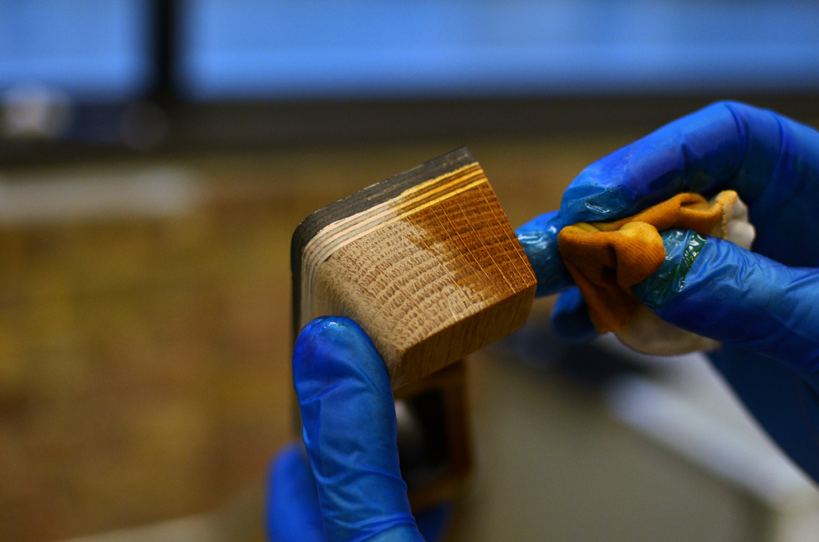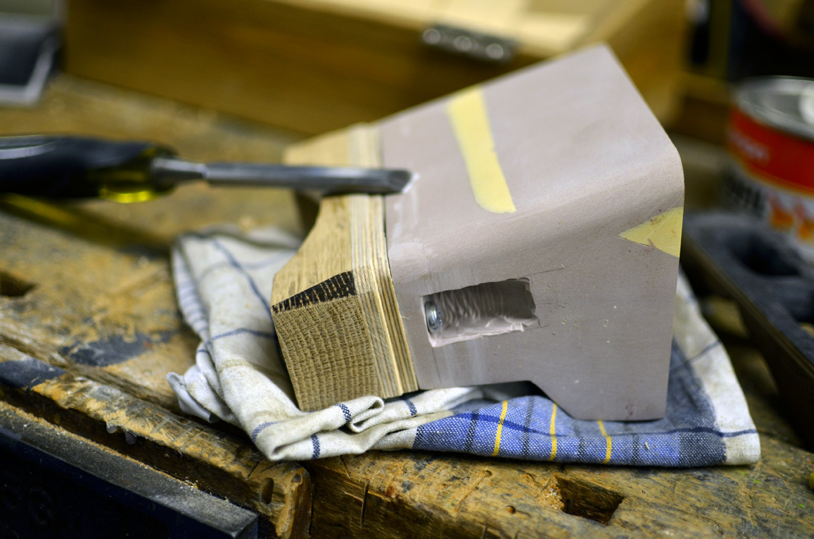Making of the recorder: chemiwood core and oaken eyepiece.