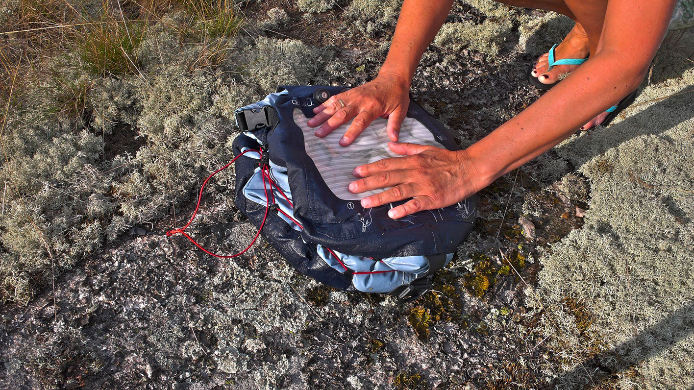 the bag can be de-aerated via the valve and tightened by a surrounding rubber spring.